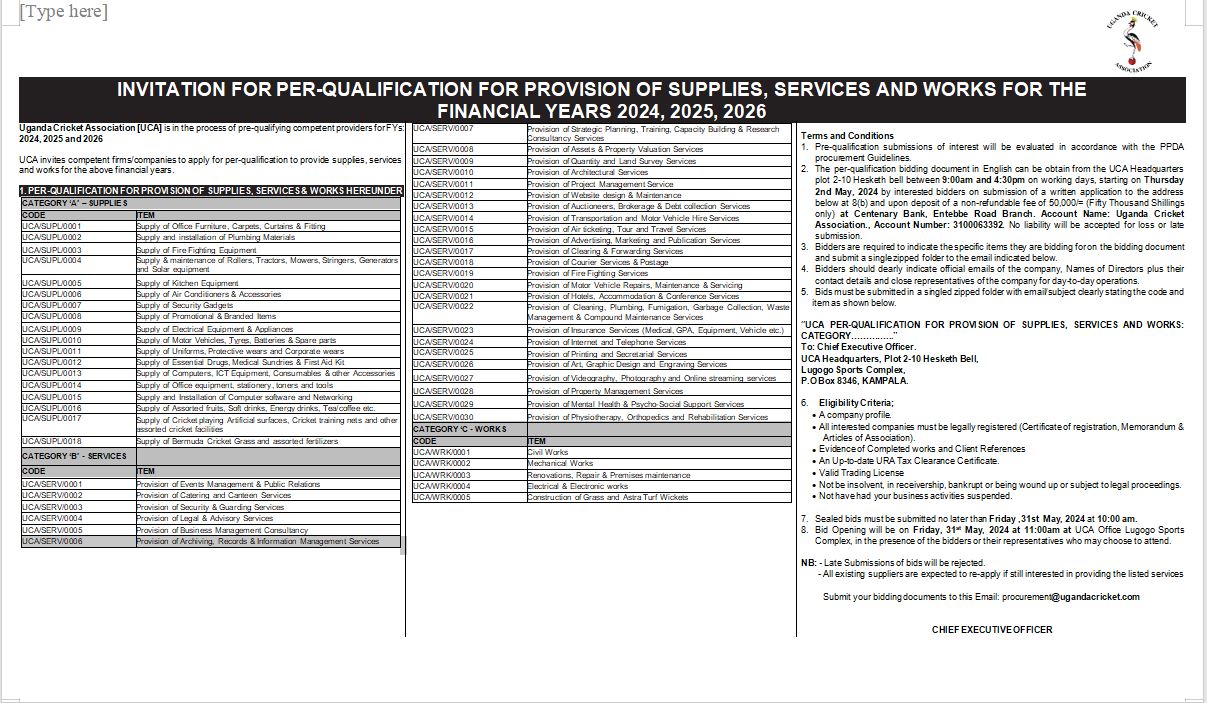 Press Release: Soroti City will host this year’s edition of the girl’s schools cricket week from May 5th – 11th . The tournament will feature sixteen schools from six different regions. The tournament will be hosted by Soroti Cricket Academy with the schools hosted by St Mary’s Girls Secondary School Madera. “This is another opportunity to see […]